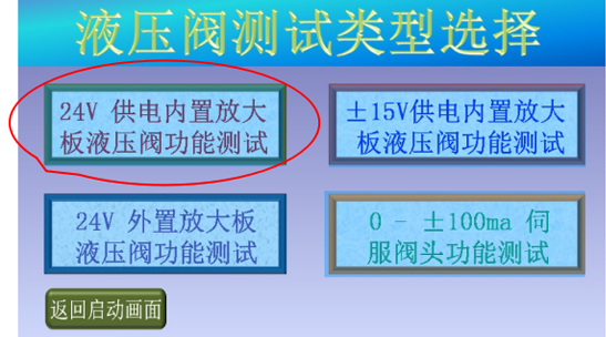 4、點(diǎn)擊“24V供電內(nèi)置放大板液壓閥功能測(cè)試”,進(jìn)入?yún)?shù)設(shè)定畫(huà)面;